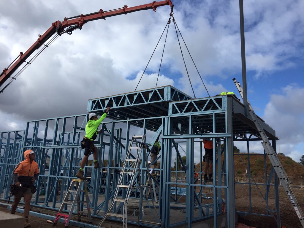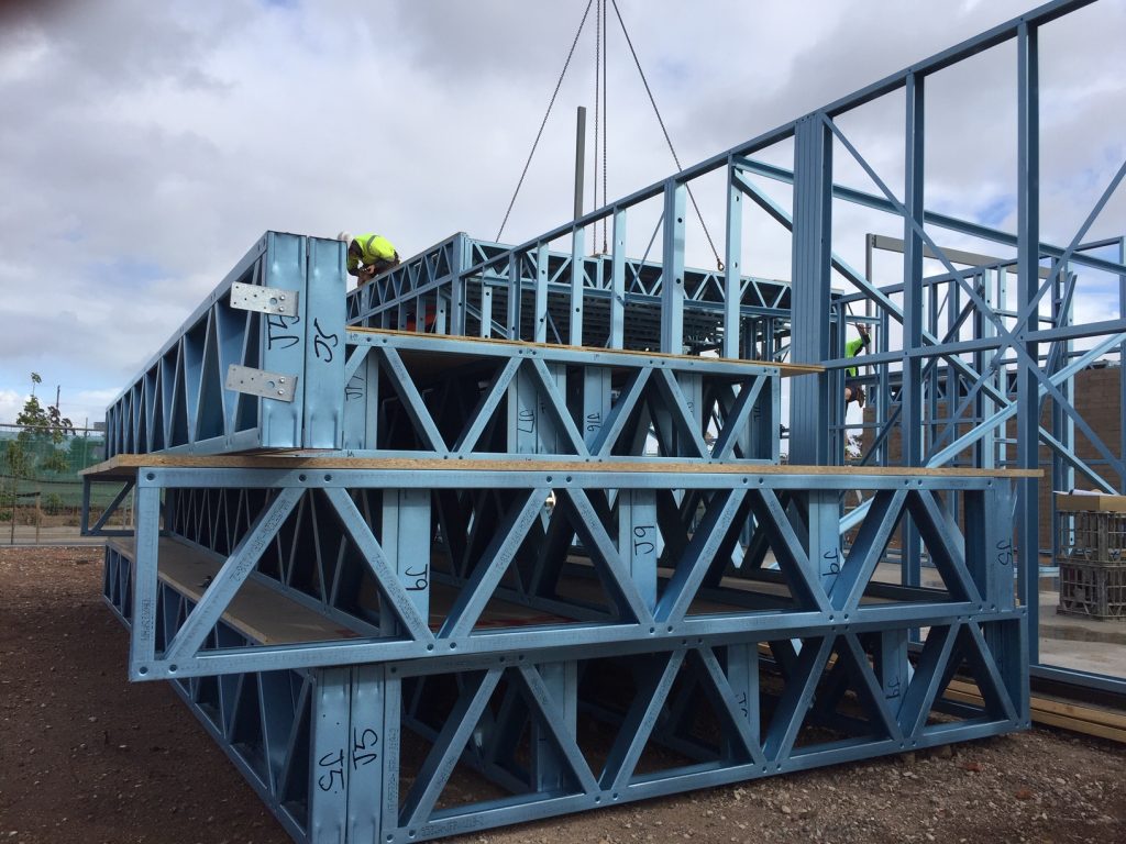 Normus engaged Maxispan Steel Building Frames to fabricate and install the wall frames and roof trusses for all 15 units. Normus estimated that the conversion to prefabricated LGS framing made from TRUECORE® steel reduced the total building program by approximately six weeks.